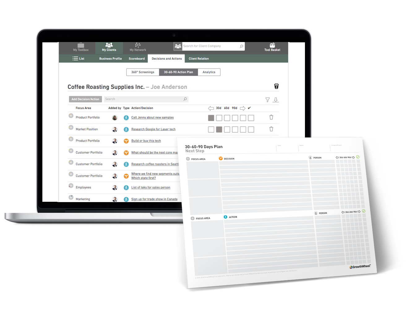 As with all of our tools, you have the freedom to choose whether you would like to use the 30-60-90 Days Plan online or on paper to keep track of all actions.