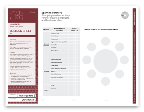 One of GrowthWheels tools is a pack of 20 visual Decision Sheets that help Business Advisors take clients through a process where they understand alternatives and reach decisions.